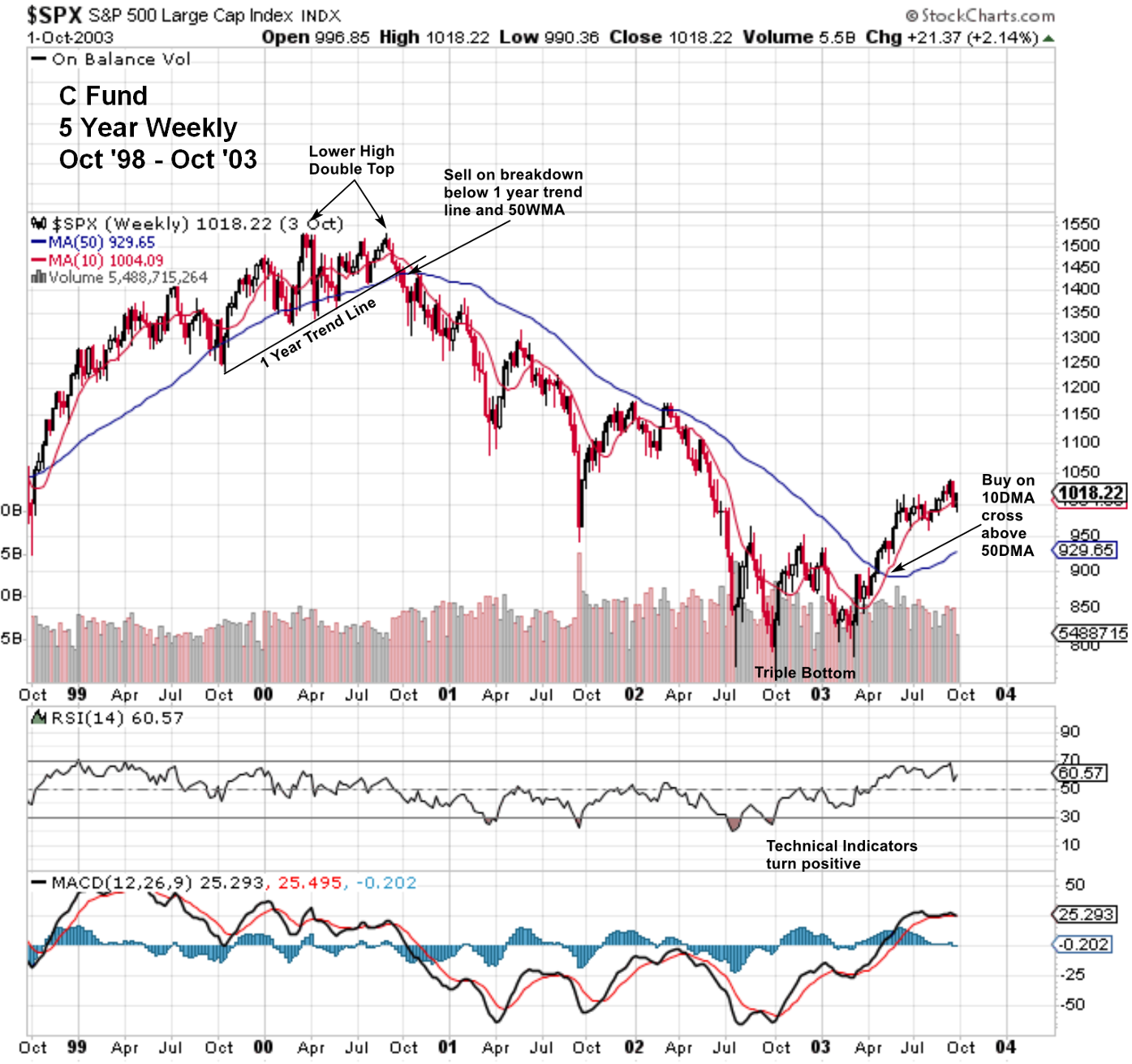 We have found that the study of both daily and weekly charts, over a 5-year, 3-year, 1-year, and 6-month time periods, are best for making TSP reallocation decisions.
